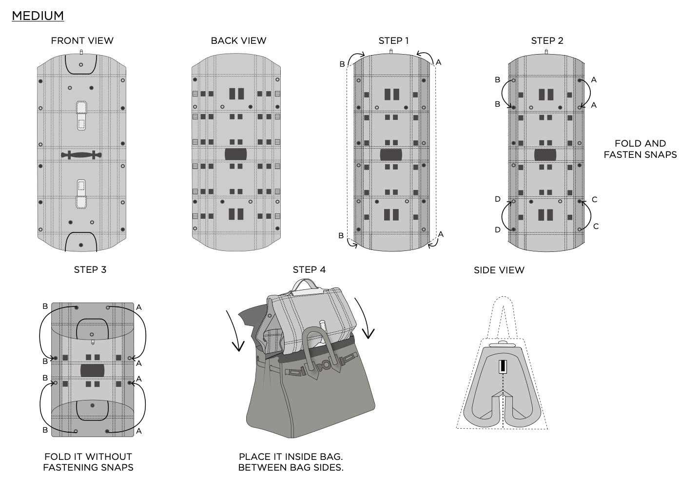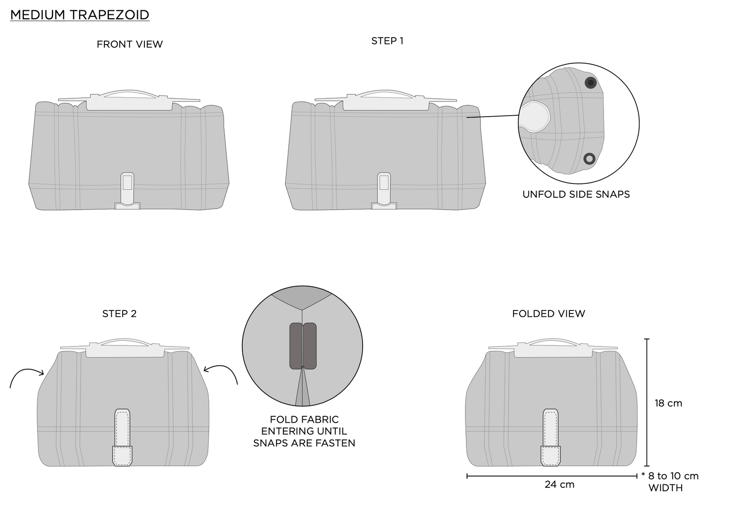 Learn how to fold and snap your Facet Bag Shaper with this step-by-step guide.